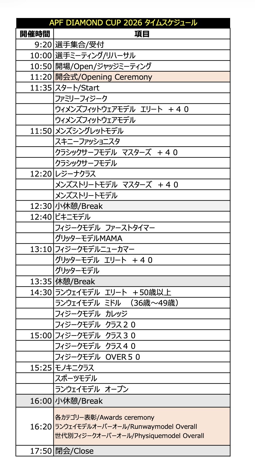 開場時間 10:50 開催時間 11:20 終了時間 19:00 選手集合時間 09:20 |